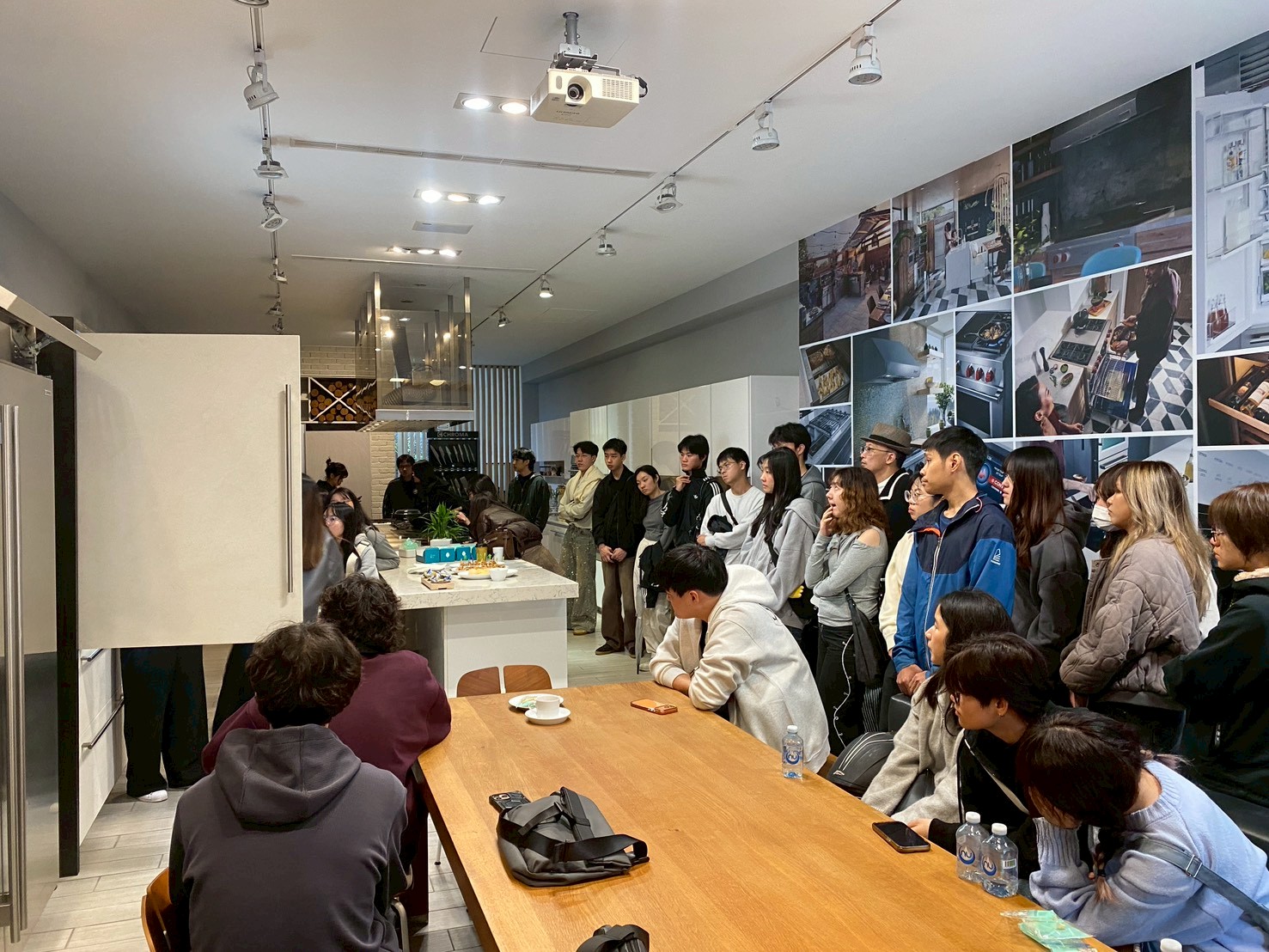 本次與德廚的合作不只是單一參訪活動,而是完整納入學期教學架構之中。前期由教師與德廚專業團隊共同說明設計題目與需求,包括空間條件、預算設定、風格定位與目標族群;中期安排學生前往德廚台中總部實地參觀展示空間,透過實際操作櫥櫃、觀察五金結構、了解收納機制與設備整合方式,將抽象概念轉化為具體印象;後期則回到課堂進行設計推演與圖面繪製,並規劃邀請產業代表參與期末成果講評,讓學生有機會在真實市場觀點下檢視自己的設計提案。